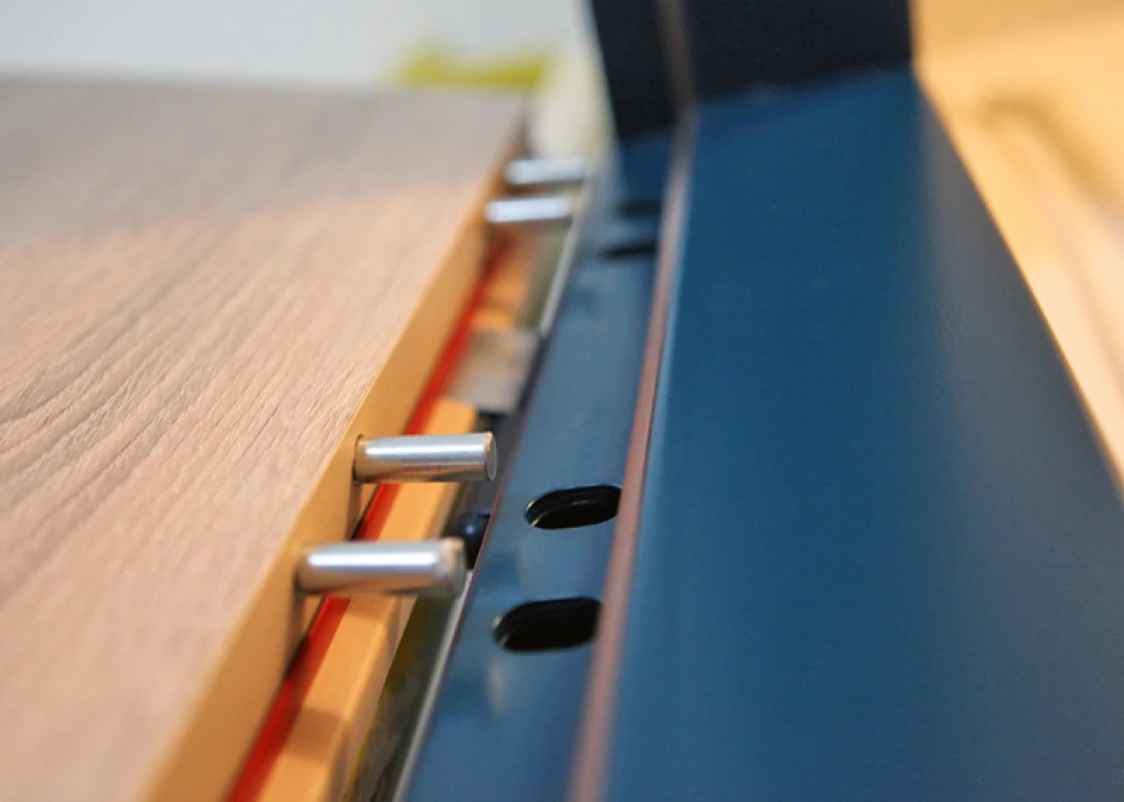 - Robustní čepy se zasouvají do zárubně a kotví dveře do zdi